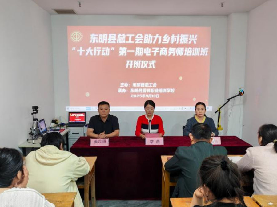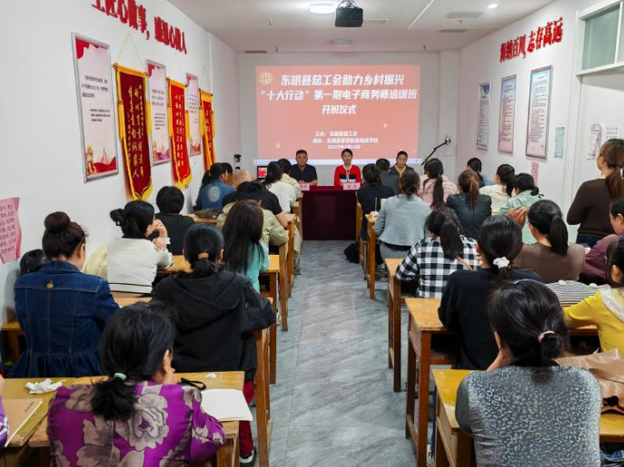 9月19日,东明县总工会助力乡村振兴"十大行动"第一期电子商务培训班开班。这是工会服务职工、助力产业振兴的重要举措,旨在帮助下岗失业职工、农民工、待业青年等就业困难群体掌握电商技能,拓宽就业增收渠道。