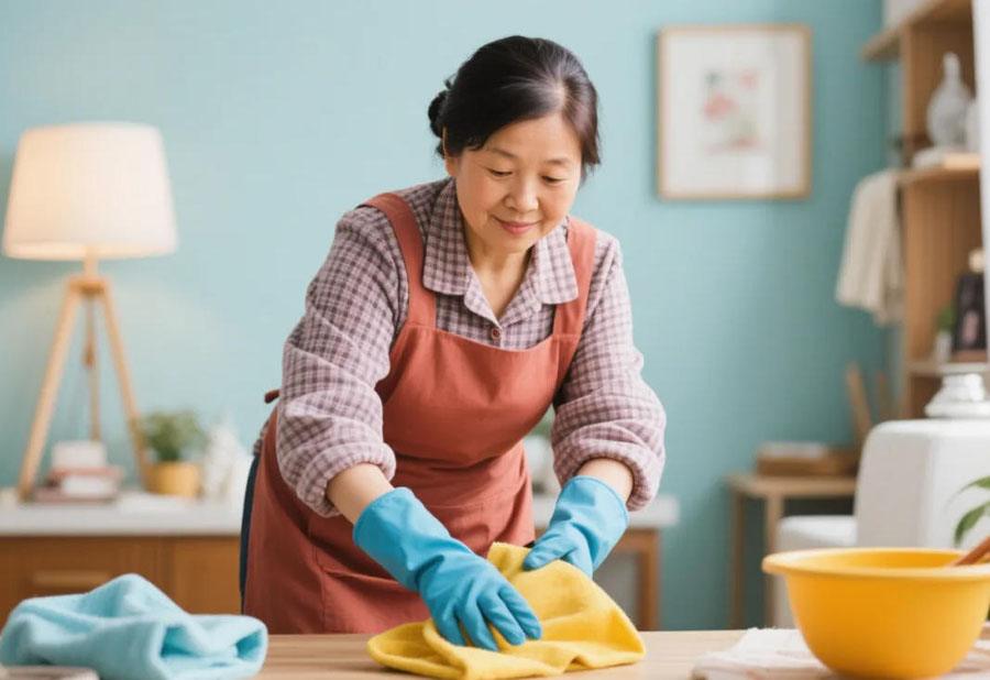 1. 日常清洁:打扫房间、擦玻璃、拖地、整理衣柜、倒垃圾等,保持家里干净卫生。